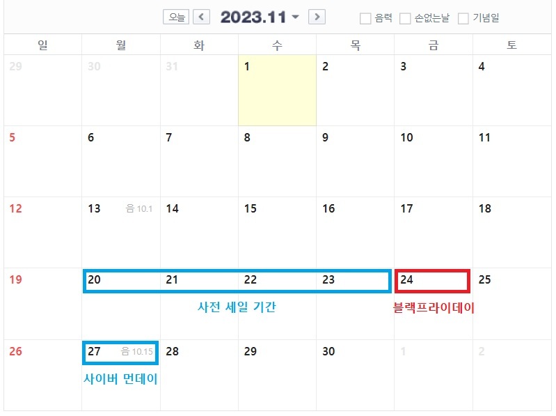 - 블랙프라이데이 : 2023.11.24(금) ~ 11.25(토)